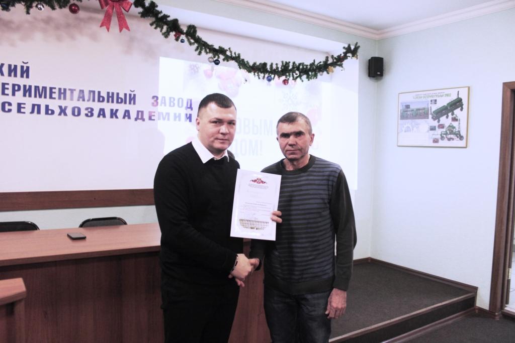 На торжественном мероприятии директор головного учреждения Максим Сергеевич Чекусов поздравил коллектив завода с наступающим новым годом, пожелал личного благополучия и успехов в работе.  Лучшие работники отмечены почетными грамотами и благодарственными письмами региональных Минсельхоза и Минпрома, Омского АНЦ и Омского экспериментального завода.