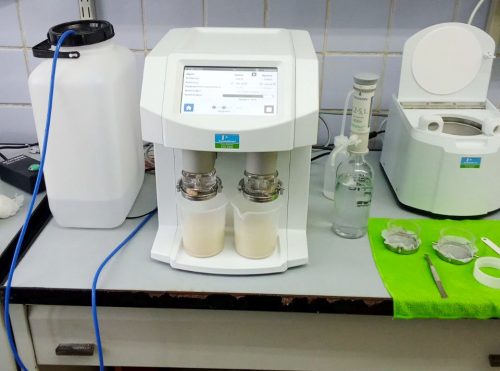 «С помощью данной установки можно работать со сложными белками для оценки содержания и качества сырой клейковины, – комментирует зав. лабораторией Ирина Пахотина. – Полная автоматизация системы и встроенный компьютер для проведения расчетов нивелируют погрешности в действиях лаборанта. Это позволяет ограничиться небольшим количеством селекционного материала (всего 13 граммов зерна с учетом размола), используя установку на ранних этапах селекции. Преимуществами так же являются непродолжительное время анализа – лишь 10 минут и возможность оценивать два образца одновременно. При необходимости система может быть использована в контроле качества муки из мягкой пшеницы для характеристики объема выпекаемого хлеба».
