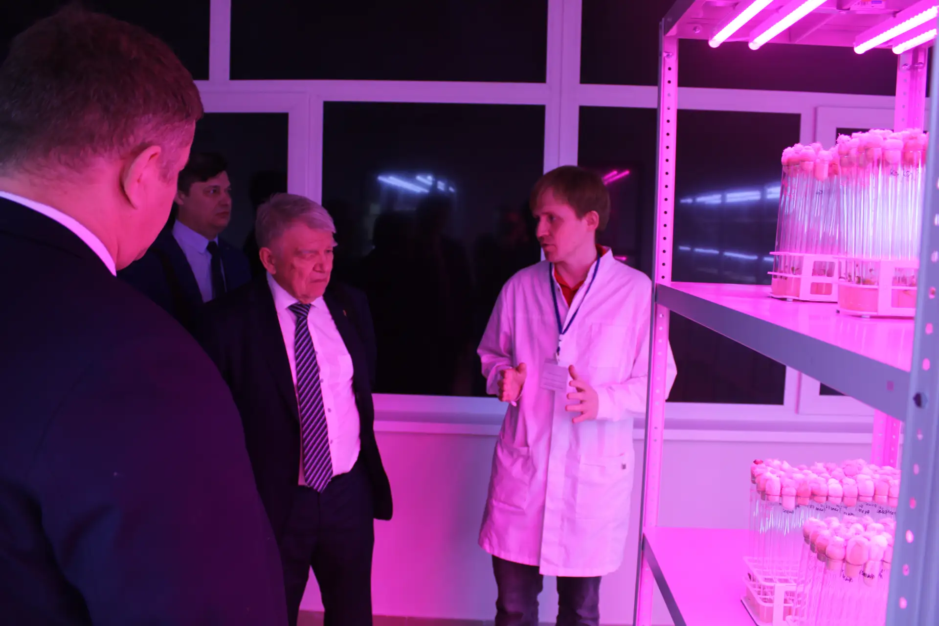 Ученые Сибирского отделения РАН осмотрели ведущие научные подразделения Омского АНЦ, в том числе лабораторию молекулярно-генетических исследований и лабораторию репродуктивной биотехнологии, оборудование для которых приобретено по проекту создания молодежных лабораторий нацпроекта «Наука». Работа лаборатории биотехнологии, к примеру, имеет целью создание новых отечественных сортов картофеля, необходимых стране. Применяемые здесь технологии позволяют получить несколько тысяч растений, оздоровленных от вирусных болезней.