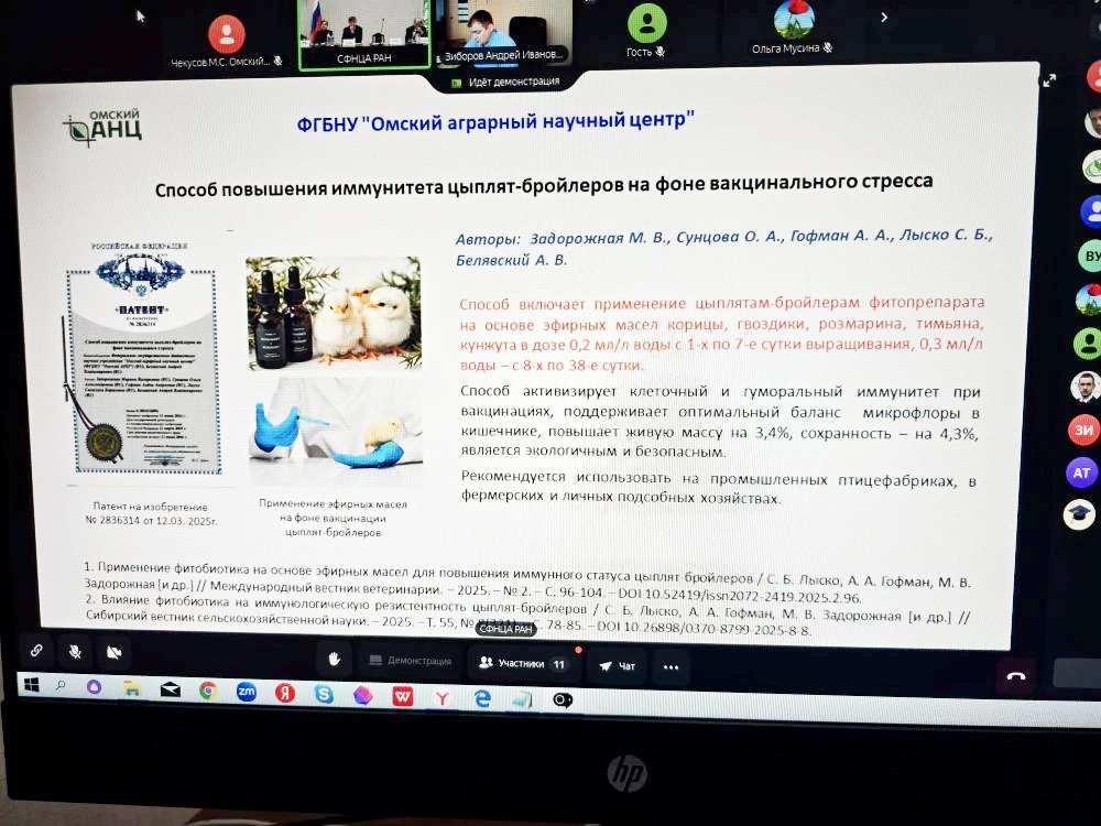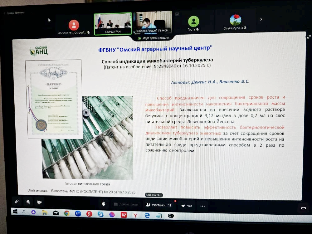Дана высокая оценка работе структурных подразделений Омского аграрного научного центра: ВНИИБТЖ, ученые которого получили патент на способ индикации микобактерий туберкулеза КРС, и Сибирского НИИ птицеводства, создавшего способ повышения иммунитета цыплят-бройлеров на фоне вакцинального стресса.