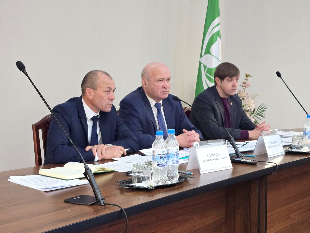 Открыли заседание председатель временной рабочей группы, директор Федерального Алтайского научного центра агробиотехнологий Алексей Гаркуша и сопредседатель группы, начальник департамента по взаимодействию с органами государственной власти субъектов Российской Федерации и органами местного самоуправления аппарата полномочного представителя Президента РФ в СФО Василий Соколов.